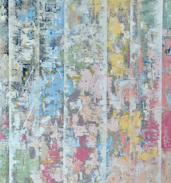 Painting "Parallel Worlds”. There is a string theory in quantum physics, and what if we, as clones, exist and live not only in this World, but also in another space. It is not possible to penetrate into another parallel because of time. Time there is faster, or slower, or there is no time at all. Question: "What if our life is a musical instrument, then who plays it?" “Veil”. A wave of heat lifted the veil, feeling the music. It burst into the room like a rainbow, filling the entire space with its ringing. A chime that can be compared to an orchestra in strength and variety of sound. Millions of tiny, tiny colored bells are calling to each other. Each bright flash of colored light was perceived as a living exciting mechanism. At one point, I saw myself as a baby, who is carelessly watching what is happening from the side. Overflowing with happiness at being able to see the radiance, I used a brush to apply paint to my "cardboard" sheet.